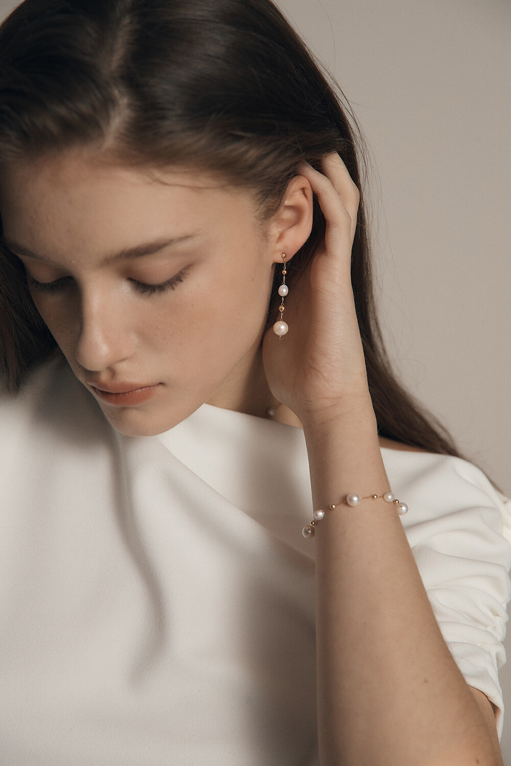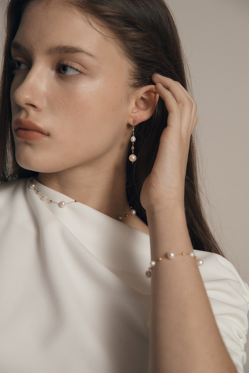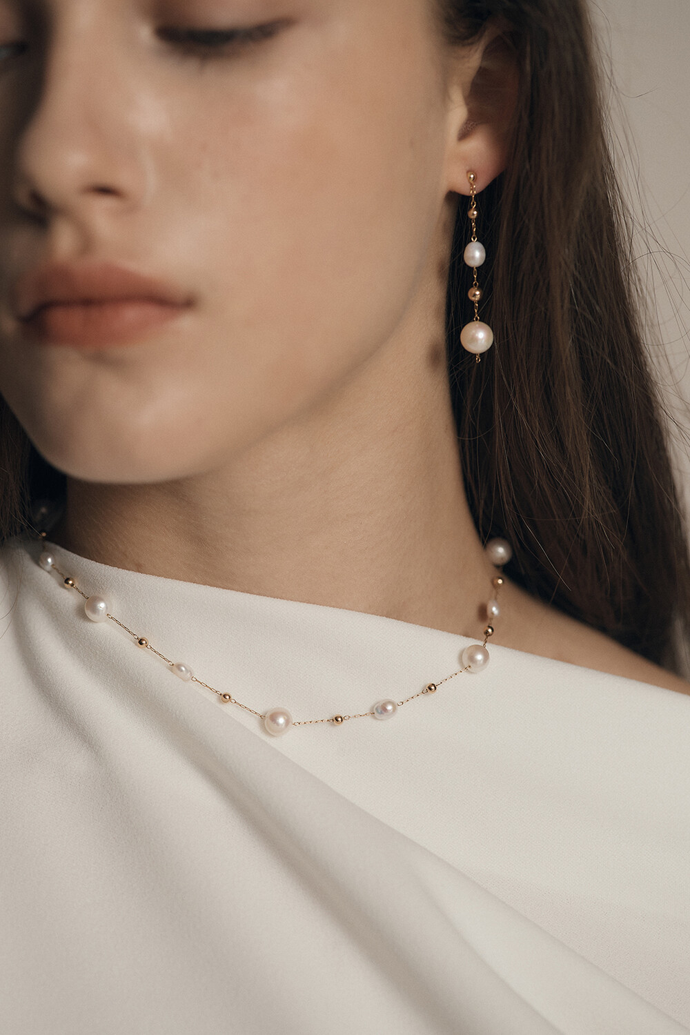 친환경 도금된 섬세한 스테인리스 스틸 체인과 담수진주의 은은한 빛이 조화로운 언제 어디서나 착용하기 좋은 925 SILVER BALL POST 이어링입니다.