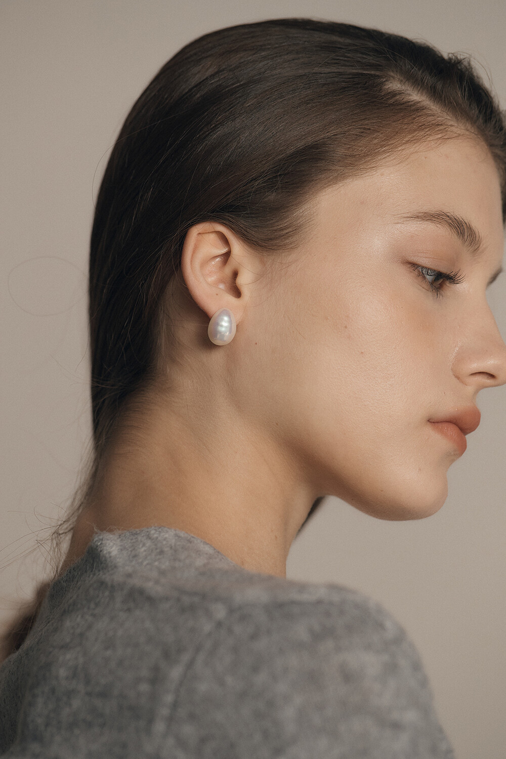 MELOE만의 천연진주 칼라를 빼어 닮은 물방울 형태의 캐보션 925 은침 이어링입니다.
