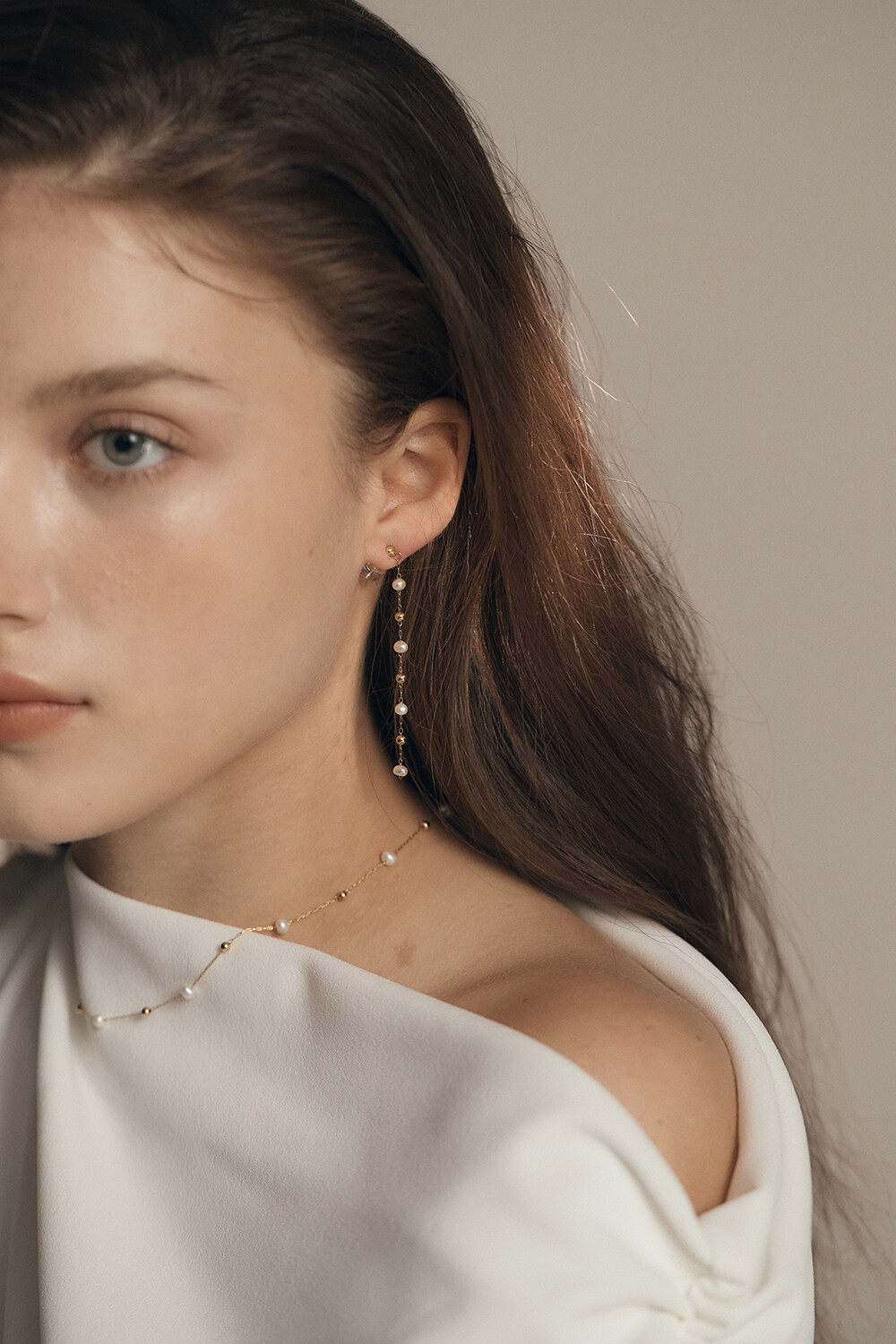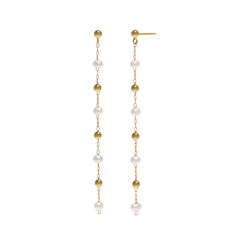 친환경 도금된 섬세한 스테인리스 스틸 체인과 담수진주의 은은한 빛이 조화로운 언제 어디서나 착용하기 좋은 925 SILVER BALL POST 이어링입니다.