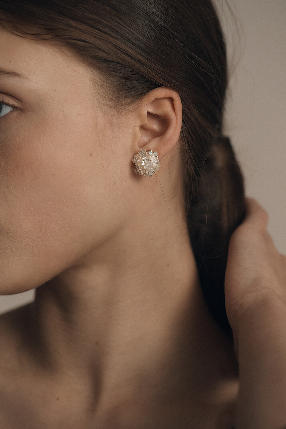 보는 각도에 따라 은은한 오로라빛이 영롱한 클로버꽃다발 형태의 925 은침 이어링입니다.