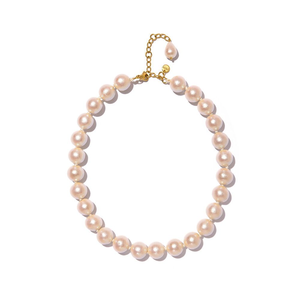 MELOE HAND KNOTTED COTTON 14MM PEARL NECKLACE