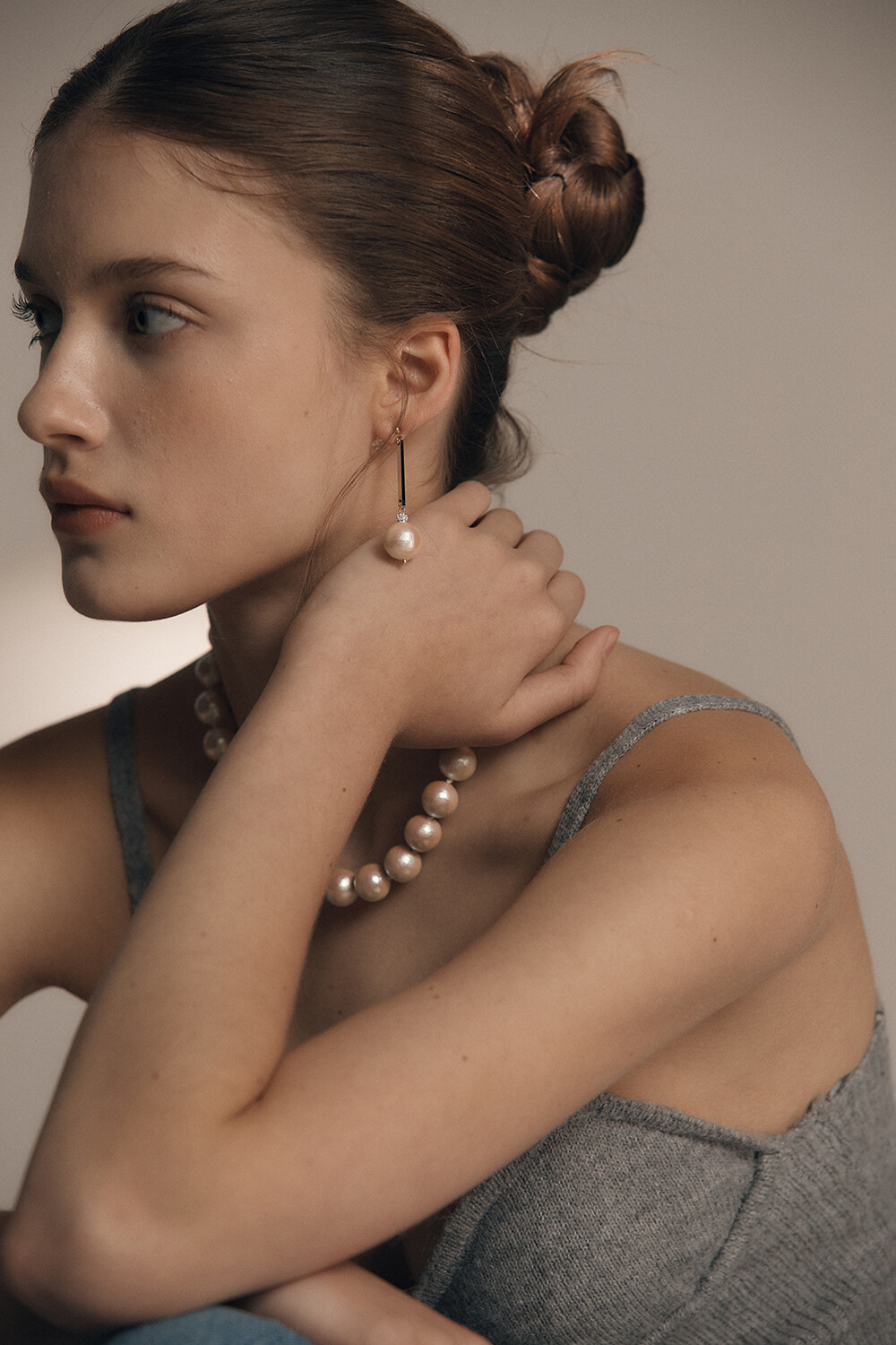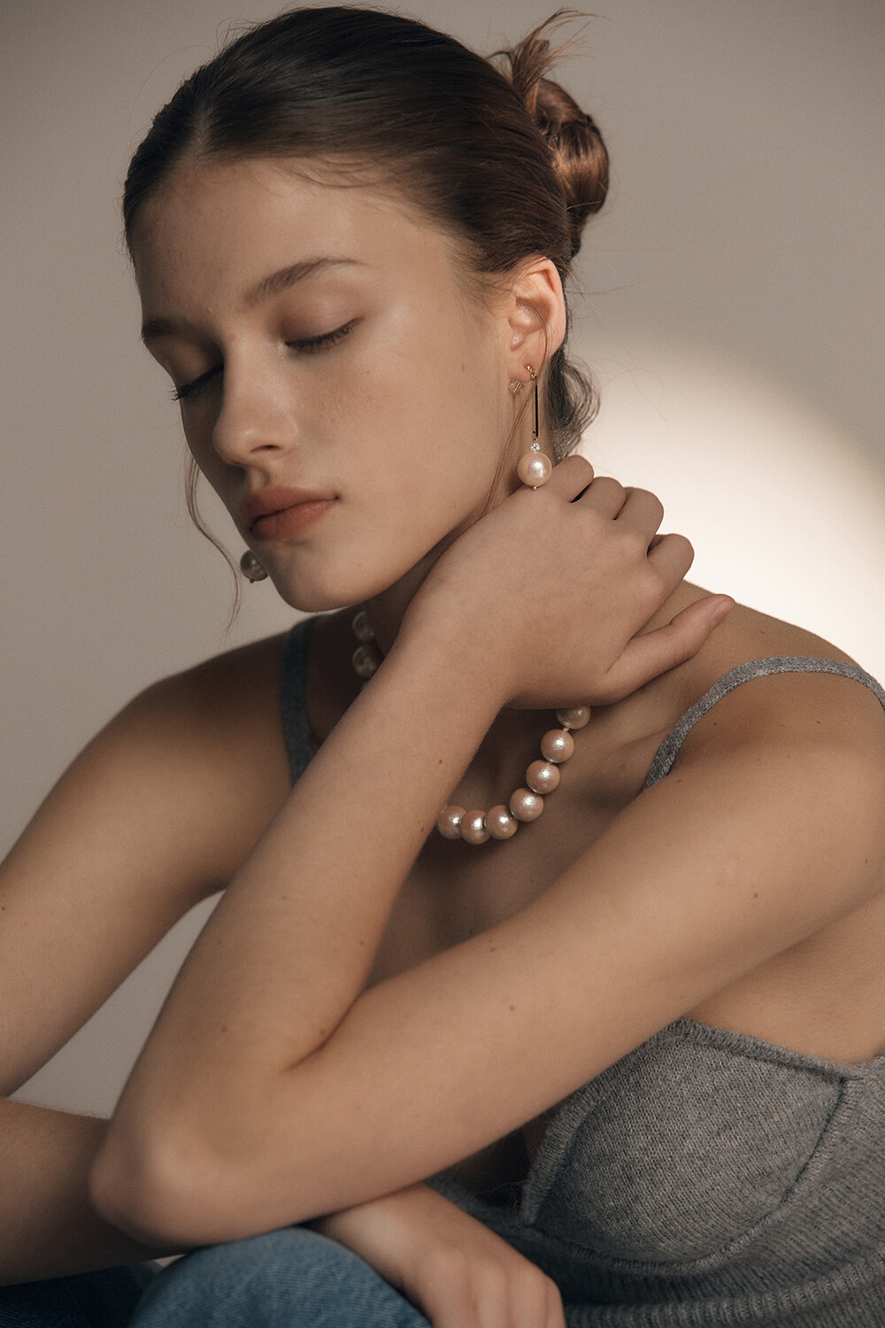달랑거릴 때 마다 반짝이는 스테인레스바와 은은한 14MM 코튼펄, 크리스탈 스톤볼이 잘 어우러지는 925 SILVER BALL POST 이어링입니다.