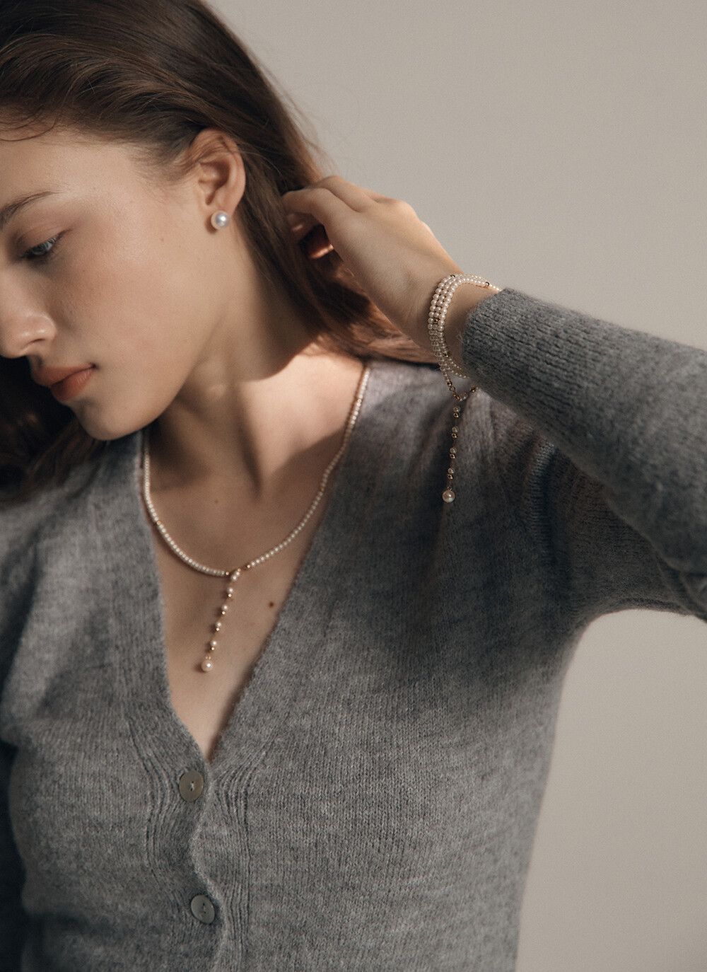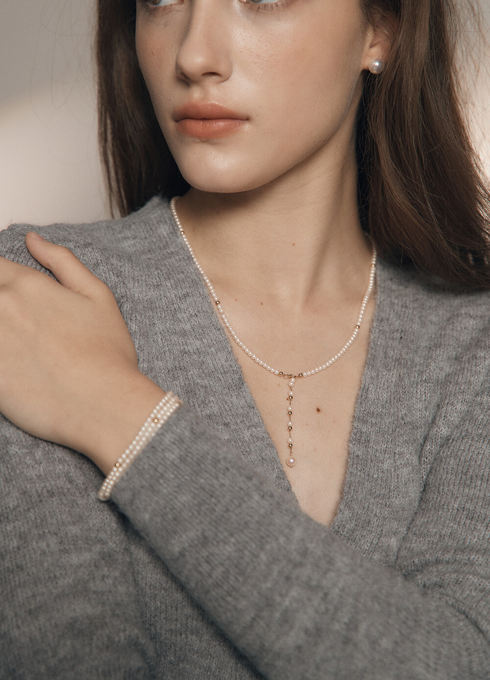 목걸이나 팔지로 연출가능한 JANUS PEARL NECKLACE입니다.