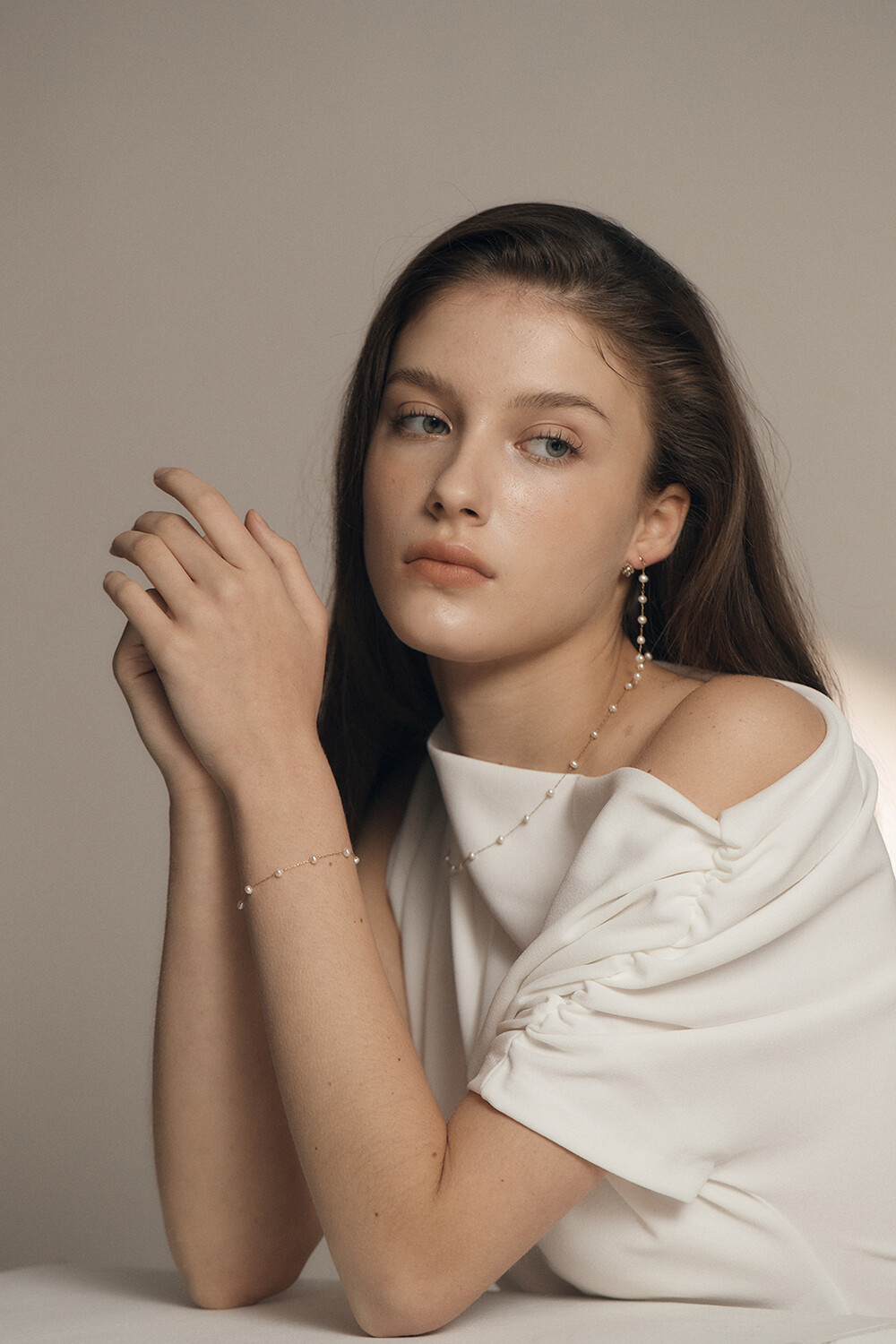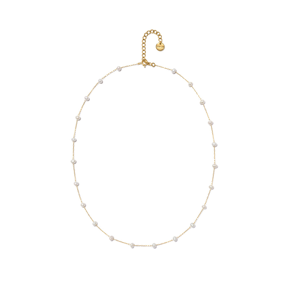 친환경 도금된 섬세한 스테인리스 스틸 체인과 담수진주의 은은한 빛이 조화로운 언제 어디서나 착용하기 좋은 목걸이 입니다.